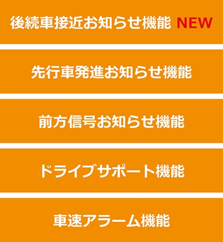 ※周囲の状況、天候、先行車や後続車の形状や色、本体の取付位置や角度、フロントガラスの汚れなどによっては正しく動作しない場合があります。
