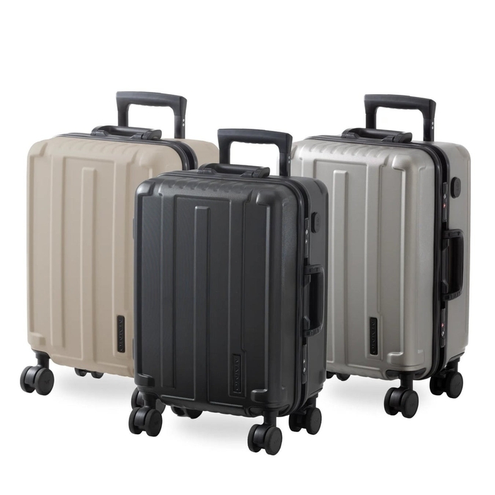 機内持ち込みサイズで、重さはわずか約2kgと驚きの軽さを実現。素材の特性上、柔軟性と高い復元力を持ち、衝撃を受けても戻りやすく、変形や割れに強くて頑丈なボディが特徴です。HINOMOTO×三菱ケミカル共同開発の「SILENT RUN」を使用。深夜や早朝の移動でも音が気にならない静音性を実現。