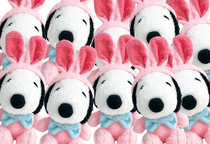 スヌーピーとピンクのバニーが合体した、とびきりキュートなぬいぐるみです。23×14×11.5cmのサイズ感もかわいくて、ずっと眺めてしまいそう♪