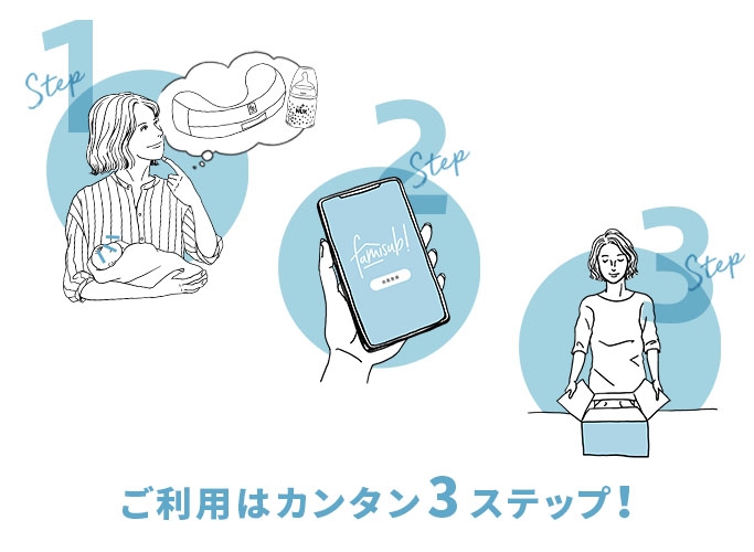 お子さまの成長に合わせて必要になる育児用品を短期間から手軽に試せるサブスクリプションサービス。購入前の不安を解消し、みなさまの子育てに寄り添うサービスをご提案します。新たに加わる「お食事/授乳プラン」を含めて、現在4つのプランを展開しています。