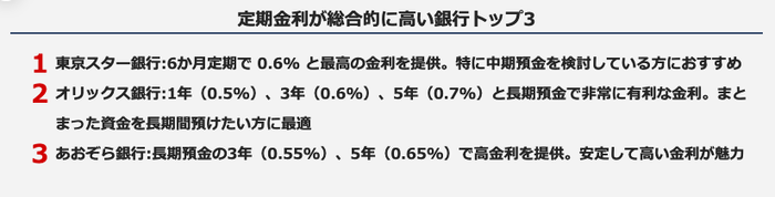 定期金利が総合的に高い銀行トップ3【2024年12月最新】