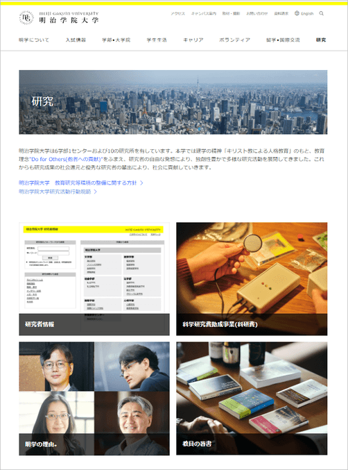 明治学院大学がWebサイト「研究」ページをリニューアル  最先端の研究へのアクセスがより容易に