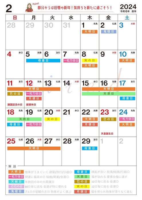 【開催内容】吉日カレンダー2024年2月版