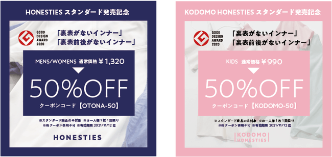 TVでも話題/グッドデザイン賞を受賞のHONESTIESの「裏表や前後がない肌着」が、試験販売を終え本格販売開始!期間限定50%OFFキャンペーンも実施!