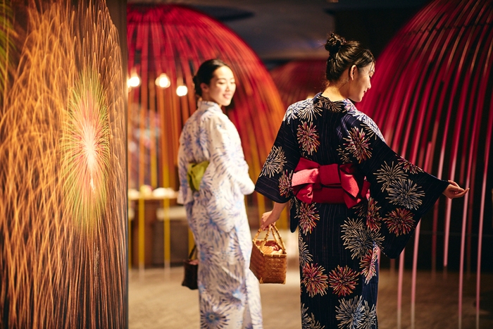 熱海の絶景と温泉に浸るリゾートホテル「星野リゾート リゾナーレ熱海」では、2020年6月14日~12月13日の熱海海上花火大会開催日の全13日限定で、花火鑑賞を楽しむ、贅沢な花火尽くしの宿泊プラン「花火女子旅」が登場します。熱海海上花火大会をイメージしたメインダイニング「和食ダイニング 花火」で、夕食と花火鑑賞を楽しむことができます。さらに花火柄の浴衣、客室でできる線香花火などを用意し花火尽くしの滞在を提案します。