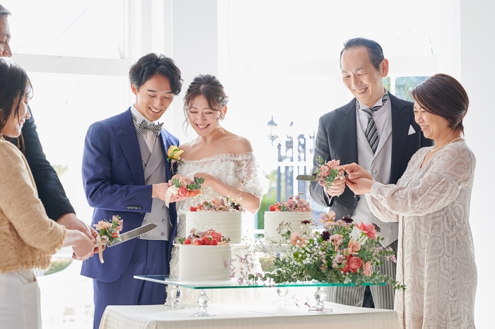 厳選食材を使用したプレミアムなフルーツケーキや、ご両親やご兄弟などと一緒にケーキ入刀が叶う3つセットのショートケーキなど、25名までの少人数だからこそ叶うこだわりを詰め込んだケーキ。