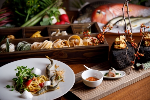 シェフとして就任したのは、前田 祐介。ひらまつ各店で研鑽を積んだのち、「THE HIRAMATSU HOTELS &RESORTS 仙石原」のオープニングスタッフとして参画。ひらまつのイタリア料理を牽引してきた吉越 謙二郎の下、ス―シェフとして経験を重ねました。御代田のイタリア料理レストランでは、得意のパスタを活かし、自家製手打ちパスタ料理をランチで4種類、ディナーでは6種類そろえます。コースでは、テーブルにワゴンで運ばれる手打ちパスタと食材を見ながら、お好みのパスタ料理を選んでいただくなどの演出も。