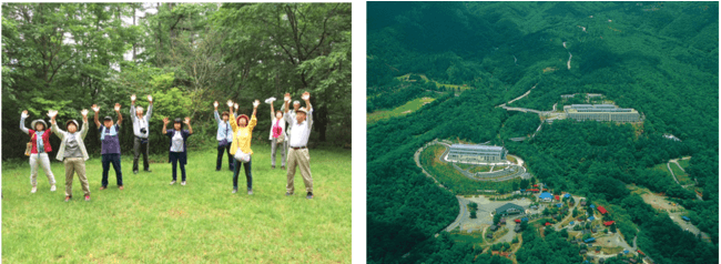 右:標高1,000メートルの国立公園内に建つ宿。手つかずの自然の中でおさんぽをお楽しみください。