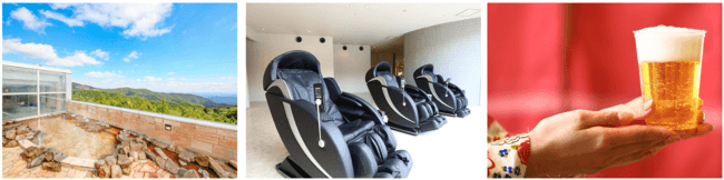 ◼️ ウェルカムソフトクリームやドリンクをご提供する「無料ラウンジ」には、歩き疲れてパンパンに張った足や、久々の運動による疲れをほぐす高性能マッサージチェアをご用意しています。どなたも無料で、ご自由にお使いいただくことができます。