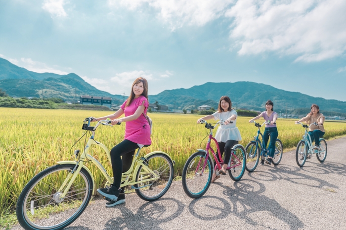 電動アシスト自転車で福岡県・岡垣町の綺麗な海や山を眺めながら、