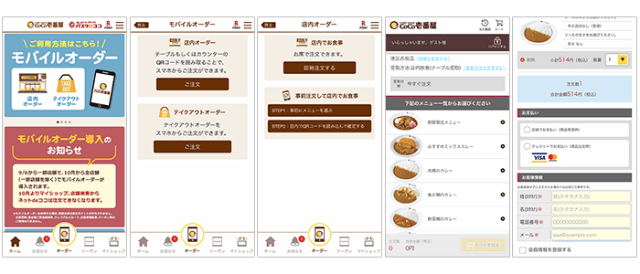 モバイルオーダー機能は、2021年10月1日より全国の『カレーハウスCoCo壱番屋』(一部店舗を除く)で運用を開始しており、店頭での即時注文/入店前の事前注文が可能な店内オーダーと、お客様のご都合に合わせて店頭/店舗駐車場で受け取りが可能なテイクアウトオーダーに対応しています。