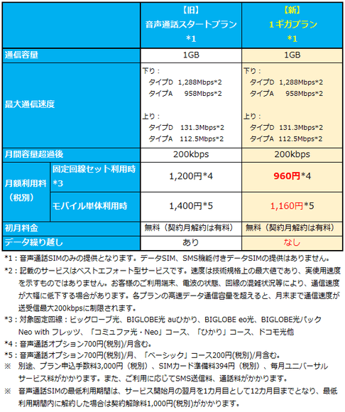 BIGLOBEは、高速モバイル通信サービス「BIGLOBEモバイル」において、新たに月額960円(税別)からの音声通話・SMS・データ通信対応プラン「1ギガプラン」を本日12月1日より追加します。