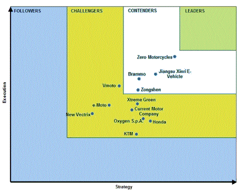 HondaやKTMといった大手数社が市場に参入している一方で、Brammo、New VetrixおよびCurrent Motor Companyといった競合他社は、ここ2年の間に事業計画を大幅に見直し、あるいは新製品を開発しました。