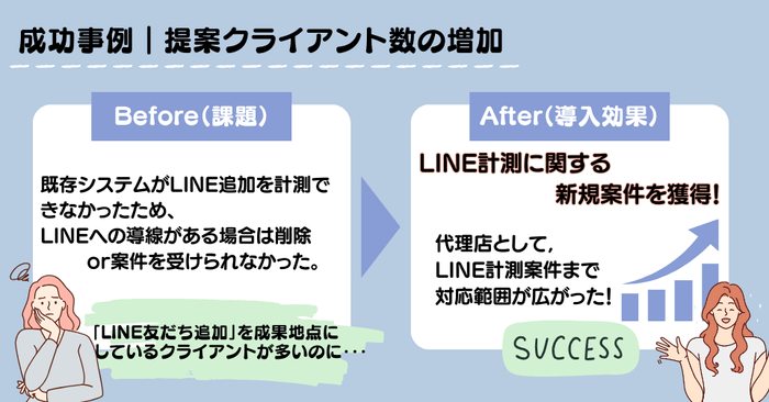 代理店として、LINE友だち登録の計測が必要なプロモーションの提案ができるようになった。