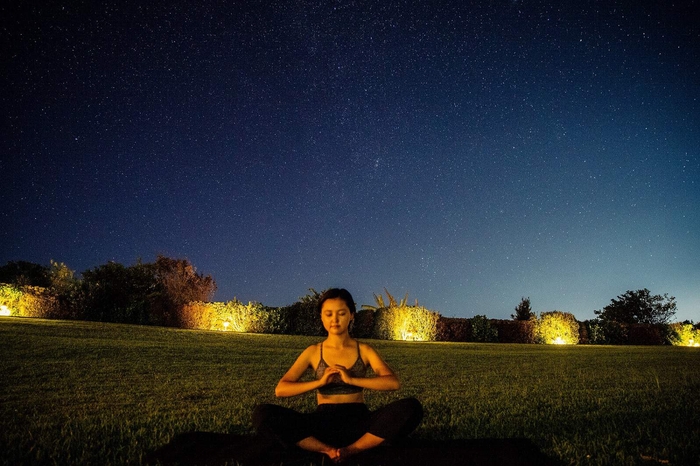 早朝と夜にそれぞれの時間に、ゆっくりとした深呼吸を意識しながら体を動かすストレッチをおこないます。早朝の「よんなー*5深呼吸」は、朝日が昇るアイヤル浜で、目が覚めるような軽快な動きも取り入れたストレッチです。夜の「てぃんぬ*6深呼吸」では、星や月が輝く夜空のもと、就寝前の心を落ち着かせるストレッチを体験します。朝と夜のメリハリをつけて規則正しい習慣をつくることで、体内時計を調整します。