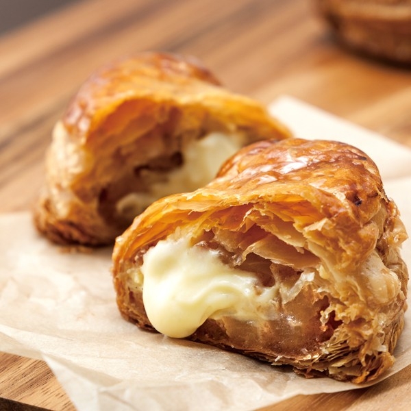 北海道産のバターを贅沢に織り込んだ焼きたてのサクサクパイに、食感と香りが楽しめるりんごと、北海道産の牛乳と生クリームを混ぜ合わせたなめらかな自家製カスタードをたっぷりつめて香ばしく焼き上げました。