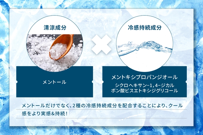 メントール(清涼成分)と、2種の冷感持続成分※2を配合することで、使用後も心地良いひんやり感が続きます。