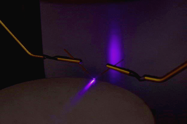 京セラが開発した100um長レーザー発振の様子