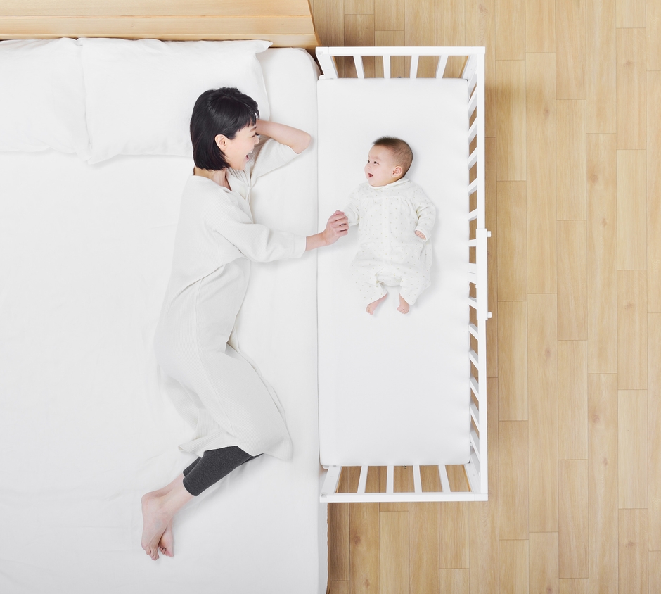 添い寝がもたらす親子のコミュニケーションを重視し、生活や子育ての多様化に応え、ベッドや布団などご家庭の就寝スタイルに合わせて添い寝することができるベビーベッドを作り上げました。子どもの安全を確保し、最短距離にいられることで安心感が得られます。