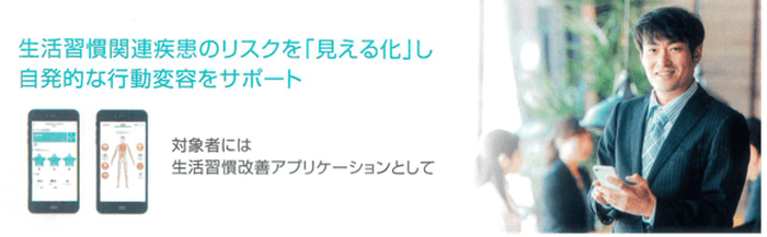 「健康支援サービス(MIRAMED)」は、東京大学COI(※2)が開発した行動変容促進システムを活用した特定保健指導支援システム/生活習慣改善アプリケーションサービスです。AIを活用して将来の生活習慣関連疾患のリスクを「見える化」することで、カラダの状態を自分事化し、自発的な動機付けを促す各種機能により対象者の行動変容と健康増進をサポートします。特定保健指導の対象者と管理者・指導担当者のそれぞれが利用できる2in1のサービスです。「健康支援サービス(MIRAMED)」が行動変容のパートナーとして、対象者の毎日に寄り添うことで、対象者の脱落を防ぐほか、遠隔面談やチャットといった機能により非接触かつ対象者の生活のペースを尊重した特定保健指導を実現します。