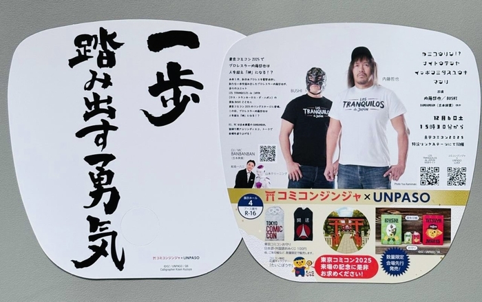 東京コミコン2025の出展ブース、コミコンジンジャ×UNPASO(ブース番号R-16)では、京都の老舗織工房で特別に製作された、東京コミコン御守りなどの販売に加え、内藤哲也、BUSHI完全監修よる御守、御朱印帳、絵馬などを会場先行・数量限定で販売。また、LOS TRANQUILOS de JAPON(ロス トランキーロス デ ハポン)のTシャツ、キャップなども販売致します。