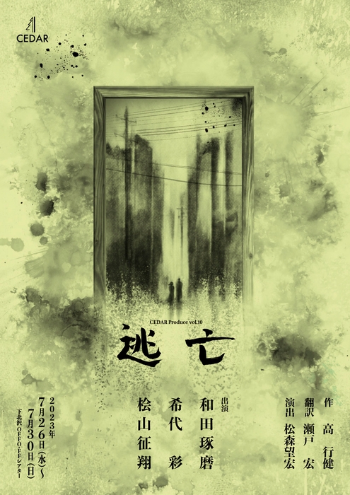 CEDAR Produce vol.10 『逃亡』が2023年7月26日 (水) ~2023年7月30日 (日)に下北沢OFF・OFFシアター(東京都世田谷区北沢2-11-8TAROビル3F)にて上演されます。チケットはカンフェティ(運営:ロングランプランニング株式会社、東京都新宿区、代表取締役:榑松 大剛)にて6月17日(土)10:00より先行発売開始です。