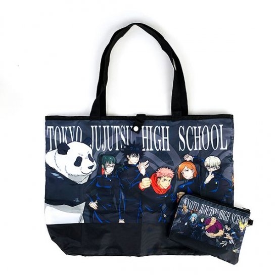 お待たせしました♪大人気の呪術廻戦からも、エコバッグが新登場です。折りたたんでコンパクトに持ち歩けるポーチ付きなので、バッグの中に常備もOK