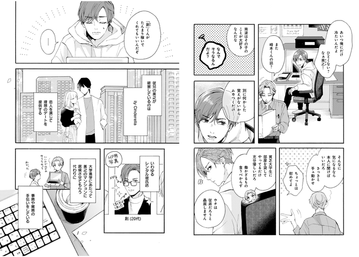 居候の条件として、従兄が経営するレンタル彼氏店の仕事を手伝う大学生の此永南波。