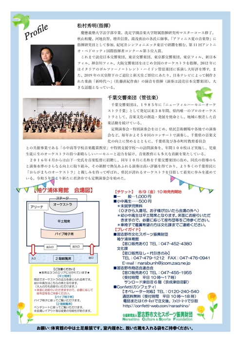 演奏は千葉県が誇るプロオーケストラ「千葉交響楽団」。指揮は、全国のプロオーケストラで指揮した経験を持つ松村秀明が務めます。
