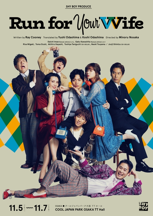「ラン・フォー・ユア・ワイフ」は平凡なタクシードライバー・ジョンが幸せな二重生活を守るために、周囲を巻き込んでいくシチュエーションコメディの鉄板作品。緻密なスケジュール調整で2つの家庭を行き来するジョンを今江大地(関西ジャニーズJr.)、ジョンの住むアパートの住人スタンリーを河下楽(関西ジャニーズJr.)が演じます。ジョンに翻弄される2人の妻メアリーとバーバラには新垣里沙と緒月遠麻。ジョンの秘密を追求するトラウトン警部役を清水順二(30-DELUX)、そして、アパートに越してきた住人ボビー役として、新キャストの林明寛、ポーターハウス警部役として、同じく新キャストの谷口敏也(30-DELUX)が出演します。