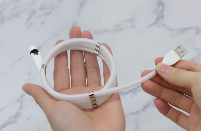 強力なマグネットにより、ケーブルが片手で簡単に接続できます。