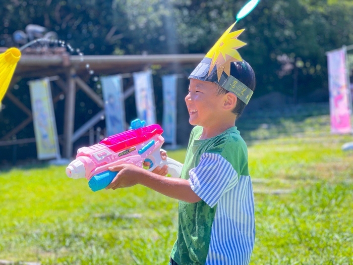 「ニジゲンノモリ アニメ淡路島公園」の人気アトラクション「NARUTO&BORUTO 忍里」では、大人から子供まで、家族みんなで“びしょ濡れ”の夏を楽しめる限定イベントが目白押し!「真夏の大水遁祭2025」では、スタッフと連携しながら、アニメさながらに“印”を結ぶことで「水遁・水龍弾の術」を発動させ、約50Lの水しぶきを吹き上がらせるスプラッシュイベント『発動させろ!~水遁・水龍弾の術~』と、参加者同士が2つのチームに分かれてウォーターガン(水鉄砲)で互いに打ち合い、相手の身体に着いている専用シートを濡らすことで勝敗を決める『「キッズ限定」科学忍具びしょ濡れ大作戦!』を開催。