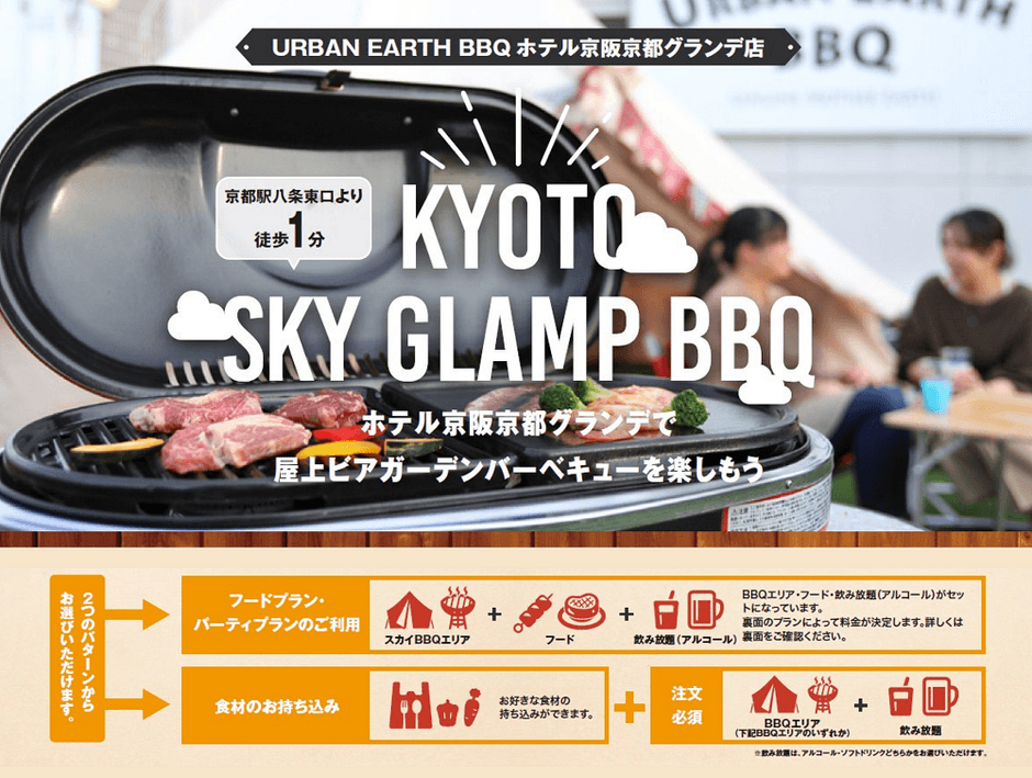 株式会社 ホテル京阪(本社:大阪市中央区 社長:山田  有希生)が運営するホテル京阪 京都 グランデ(所在地:京都市南区)では、株式会社スタンドケイ(本社:大阪市北区 社長:名倉 昂佑)が運営プロデュースする屋上バーベキュー「URBAN EARTH BBQ」において2022年7月1日(金)より新メニューの提供をはじめます。