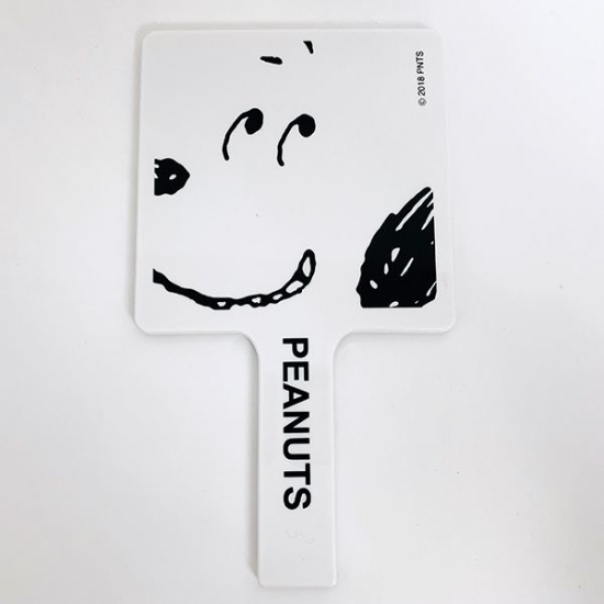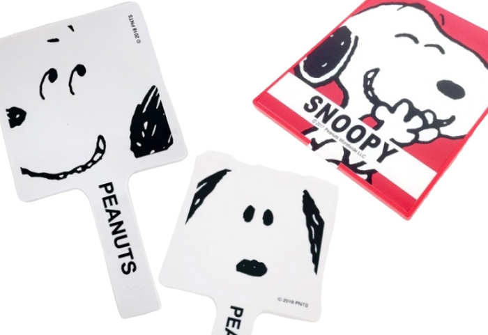 お次は、使っている時にスヌーピーの顔になっちゃう、ユーモアたっぷりの手鏡のご紹介です。手鏡は顔の前にかざして使いますよね?その時、前から見るとちょうどスヌーピーの顔が重なっているように見えるんですよ!