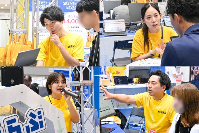 会場入口から目立つ位置にブースを構え、いえらぶGROUPおよびグループ各社合同での出展となりました。ブースでは、各社サービスのご紹介や導入事例ムービーを上映し、多くの方にいえらぶの取り組みを知っていただく機会となりました。