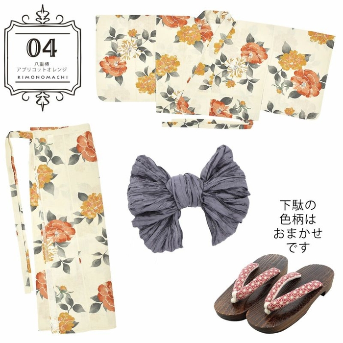 二部式のセパレート浴衣としわ兵児帯と下駄がセットになった、着付け簡単、コーディネート済みのレディース浴衣セットです。