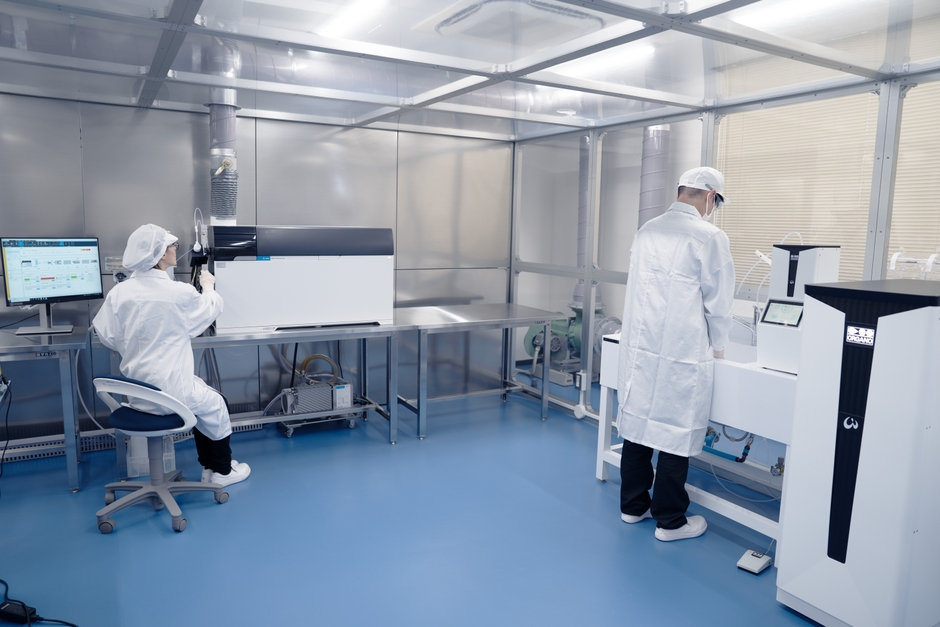 本サービスは、最新の分析装置であるトリプル四重極ICP質量分析装置(ICP-QQQ)とISOクラス1※のクリーン空間を生成する、スーパークリーン生成装置を組み合わせることで、汚染の少ない環境を保ちつつ、1μg/L(ppb)~1ng/L(ppt)オーダーまでの極微量元素を高感度・高精度に検出し、お客様がお持ちの薬剤・薬品・溶媒中に含まれる金属不純物の管理をサポートいたします。