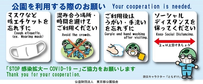 ご来園時はマスクの着用等、皆様が安心してお楽しみいただけるよう、下記の通りお願いしております。