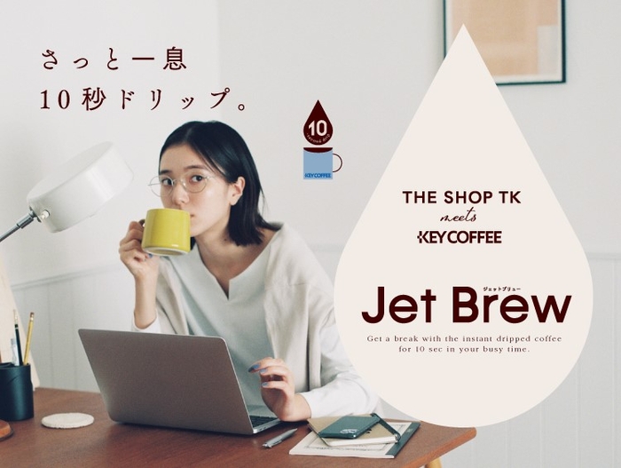 たった10 秒で本格レギュラーコーヒーが楽しめる「Jet Brew(ジェットブリュー)」と、着るだけでさっと着映えするTHE SHOP TK のカットソーがコラボレーション。心地よい洋服とおいしいコーヒーで、ふとした時間をちょっといい時間に。