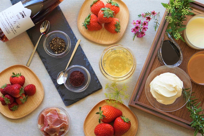 15:30 客室でイチゴと7種類のコンディメントを楽しむ