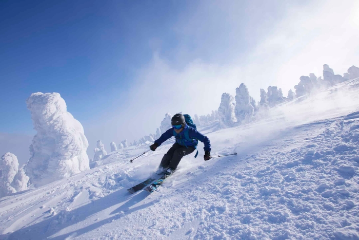 十和田八幡平(はちまんたい)国立公園内に位置する八甲田は、迫力ある樹氷と上質なパウダースノーを同時に楽しめる世界中のスキーヤーにとって憧れの場所です。ロープウェーで山頂まで上がると、そこには見渡す限りの真っ白な雪景色とそびえ立つ樹氷など日本が世界に誇る絶景が広がります。パウダースノーに板を浮かせ、雪煙を上げながら樹氷の間を縫うように滑る感覚は言葉では表現できない気持ちよさです。八甲田は、時期や天気、気温、風、積雪など、その日の条件によって見える景色が異なります。また、滑走コースも長く複数のコースがあるため、一日だけでは楽しみ尽くせません。そこで、八甲田のパウダースノーを満喫できる、3泊4日の宿泊プランを提案しました。