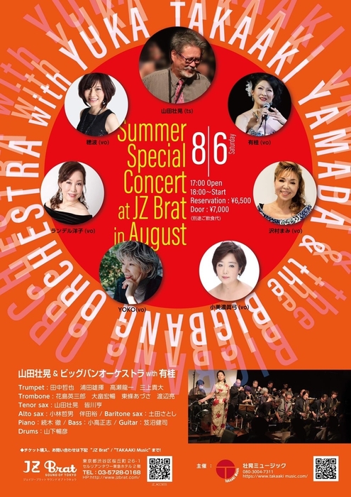 『TAKAAKI YAMADA & BIGBANG ORCHESTRA with YUKA Summer Special Concert at JZ Brat in August