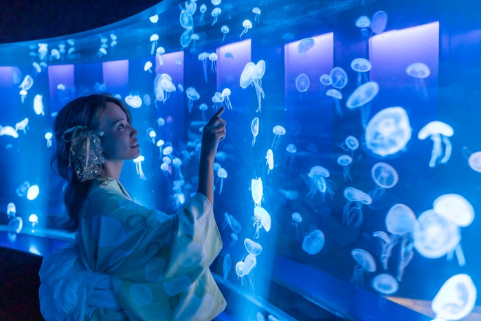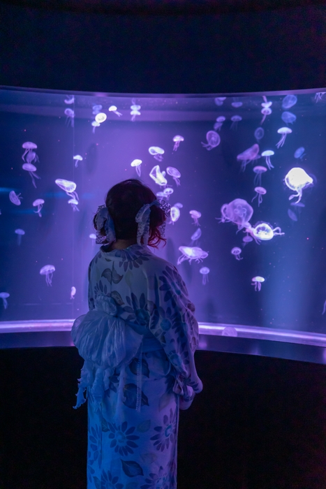 ぜひ夢館のオリジナルクラゲ柄の浴衣×クラゲ帯結びを着用して、京都水族館のクラゲを見に行ってください。クラゲづくしで、癒しと高揚感の両方を味わえる至福のひと時を過ごせると思います!