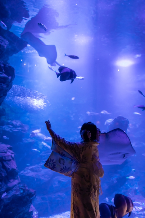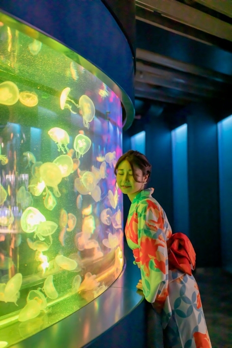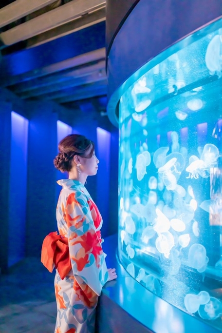 クラゲ帯結びの浴衣 × 京都水族館で自分だけの写真を撮ろう