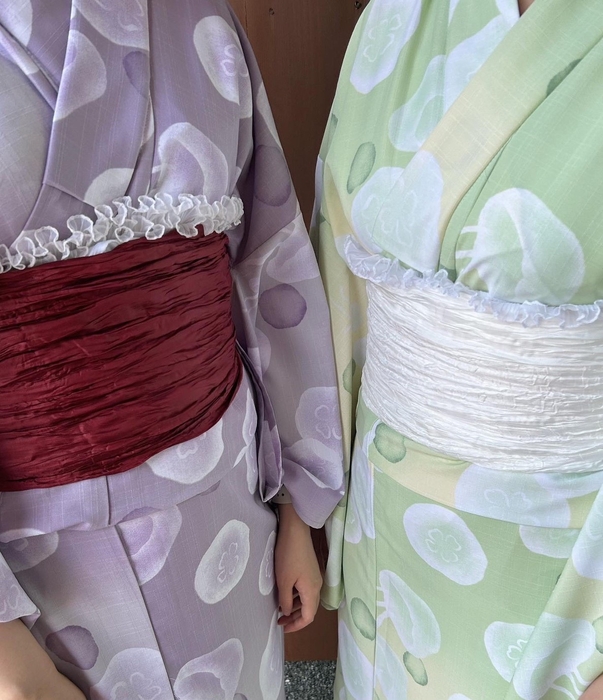 京都着物レンタル夢館の姉妹ECサイト「京都きもの町」のスタッフがくらげ浴衣をイメージして開発した兵児帯で作るオリジナルの「クラゲ帯結び」をXで発表したところ、非常に好評だったことを受け、急遽京都着物レンタル夢館でも、8月~9月中旬まで一日4組様限定でご提供することになりました!