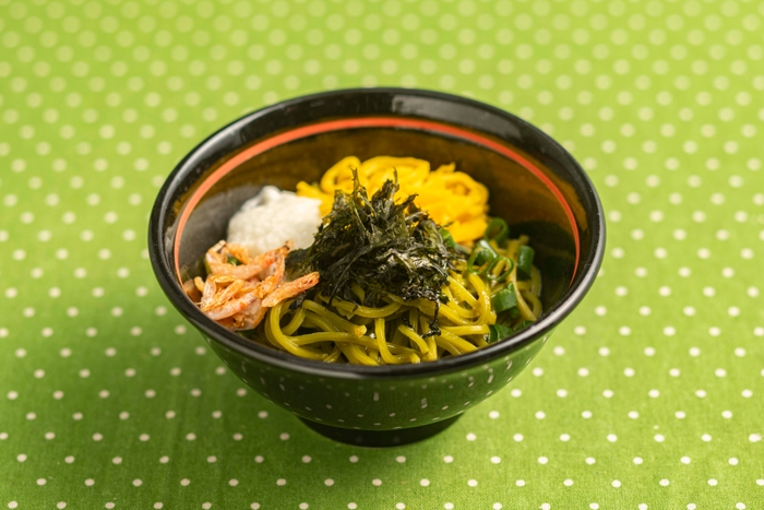 キハダマグロのタタキに、ネバネバの納豆ととろろを合わせました。こちらもわさび醤油の味付けで。