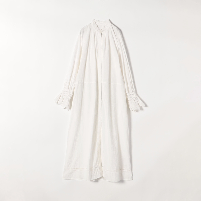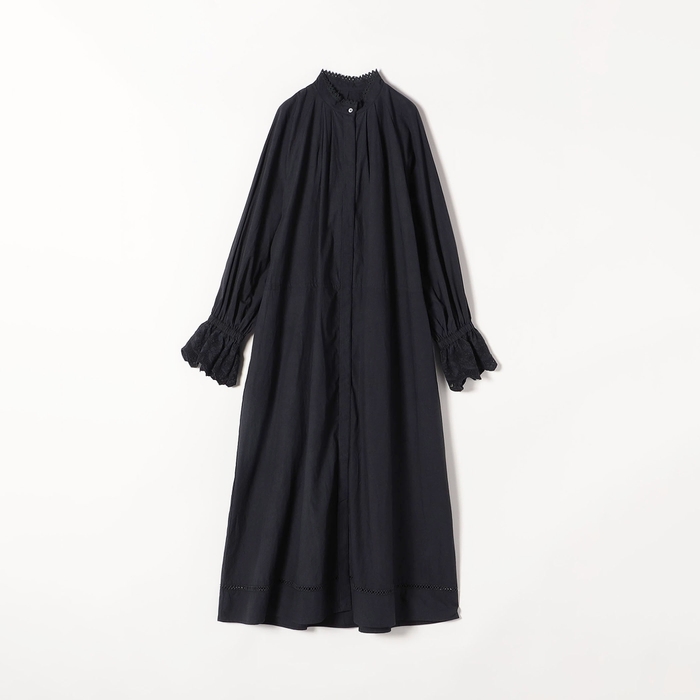 襟元と袖口にポイント使いしたレースとマキシ丈で華やかな雰囲気を纏えるこだわりのシャツワンピース。袖口のレースはギャザーをたっぷりと寄せて贅沢に使いました。襟元には華奢なレースを挟み込み、程よく顔周りに華やかさをプラスしてくれます。程よいハリ感が特徴のコットンポプリン素材が袖のボリューム感や綺麗なシルエットを作り出し、一枚で着てもレイヤードで合わせても様々な見せ方が着回しが楽しめます。ご自宅でお洗濯ができる、イージーケアも嬉しいポイント。