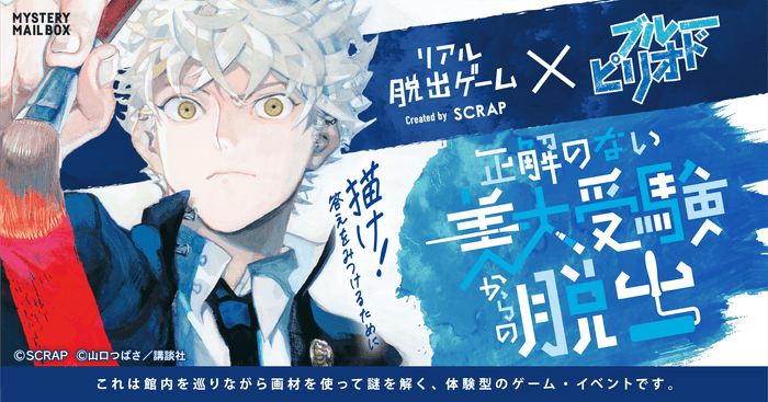 世界中で参加者を熱狂させる“リアル脱出ゲーム”を企画運営する、株式会社SCRAP(所在地:東京都渋谷区、代表者:加藤隆生)は『ブルーピリオド』とコラボレーションしたリアル脱出ゲーム『正解のない美大受験からの脱出』を2022年7月15日(金)より、開催することを発表いたします。