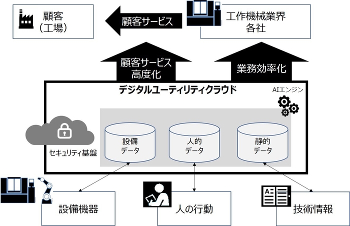 「デジタルユーティリティクラウド」は、工作機械業界全体で重複している社内業務の効率化および顧客サービスの高度化を目指し、デジタル革新を加速させる構想です。その実現のために三社は、業界各社で共通利用できるクラウドサービスの開発に取り組み、デファクトスタンダードを目指します。