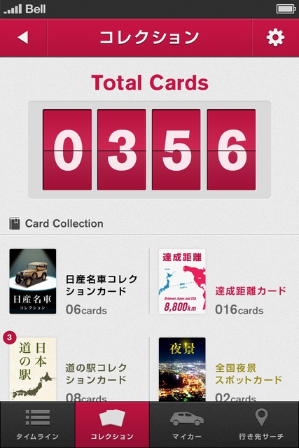 ドライブで通ったスポットや、走行距離に応じてさまざまなカードを取得し、コレクションできます。